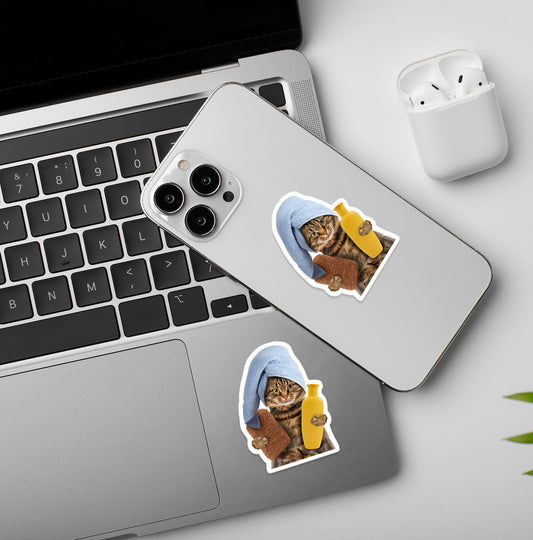 Skincare Kitty - Funny Cat Meme Laptop / Mobile Sticker